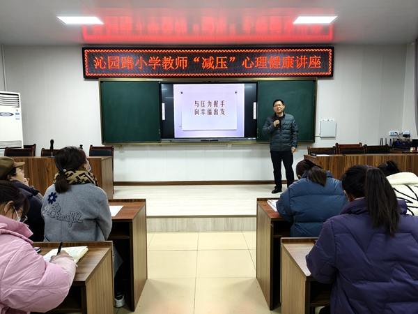 为做好职工的心理疏导和身心健康提升工作,更好地守护广大干部职工的心理健康,提升他们的自我调节能力, 12月4日,济源市沁园路小学邀请济源一中心理咨询师、学习能力指导师闵宇飞老师走进公益讲堂,开展了“与压力握手 向幸福出发”心理健康公益讲座。